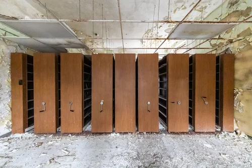 Many cities, small and large, once had ornate Armories with large drill sheds. Over time, most have been sold to private interests for new uses. The Schenectady Armory is currently owned by a development company. The Drill Shed is used for sports and other events in the winter. Most of the rest of the building is unused and untouched, some areas for over 20 years. Photographed in November of 2017.